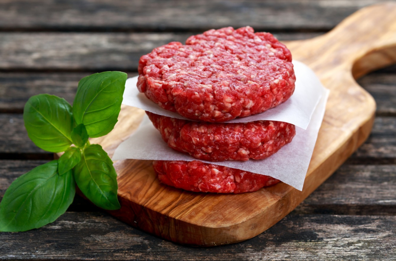 Farklı gramajlarda dana hamburger köftesi.