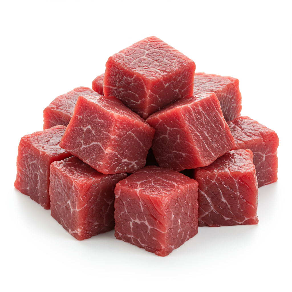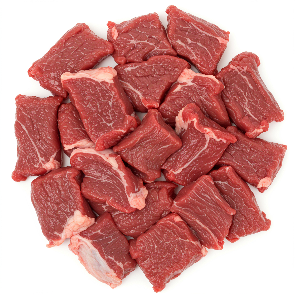 Güveç ve sote için ideal boyutta kesilmiş premium dana eti.